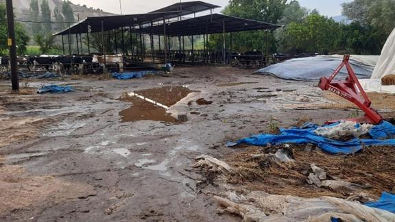 Aydın'ın Karpuzlu ilçesinde sağanak nedeniyle dereler taştı, bazı ev ve çiftlikleri su bastı.
