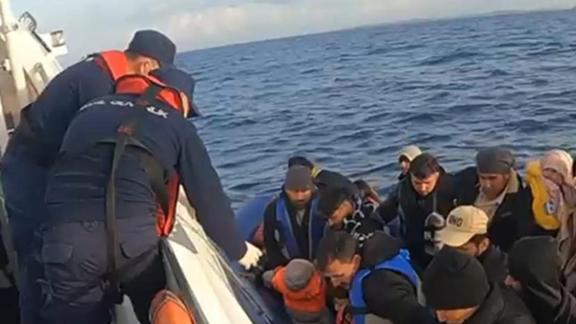 Bölgeye doğru Sahil Güvenlik botu "KB-115" ile harekete geçen ekipler, Midilli Adası'na gitmeye çalışan bottaki 20'si çocuk, 39 düzensiz göçmeni yakaladı.