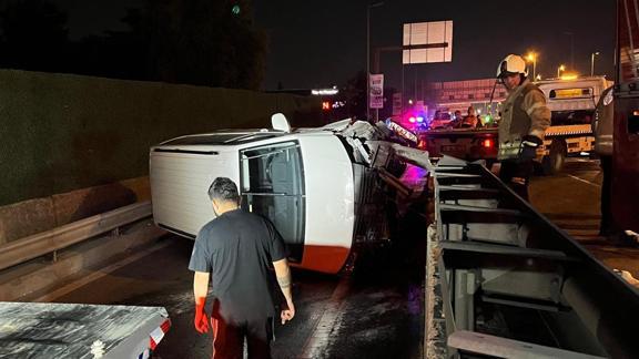 Olay, akşam saatlerinde İstanbul'da E-5 Karayolu Fatih mevkii Okmeydanı istikametinde meydana geldi. İddiaya göre, seyir halindeki 34 CAZ 156 minibüs, sürücüsünün direksiyon hakimiyetini kaybetmesi sonucu yol ayrımındaki bariyere çarptı. Çarpmanın etkisiyle araç, Ayvansaray-Eyüp kavşağına savrularak yan yattı. İhbar üzerine olay yerine polis ve itfaiye ekipleri sevk edildi. Olayda sürücü kazadan yaralanmadan kurtulurken, yolda trafik yoğunluğu oluştu. İtfaiye ekipleri bariyeri kestikten sonra araç çekici yardımıyla kaldırıldı. Polis ekipleri kazayla ilgili inceleme başlattı.