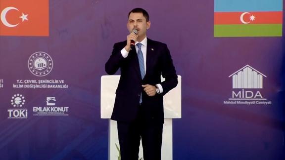 Çevre, Şehircilik ve İklim Değişikliği Bakanı Murat Kurum, Kahramanmaraş'ta "Azerbaycan Mahallesi'nde 250 Bininci Afet Konutu Anahtar Teslimi ve Kura Çekim Töreni"nde açıklamalarda bulundu.