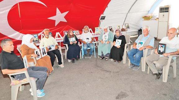 AKŞAM Gazetesi'nin AA'dan aktardığı habere göre, dağa kaçırılan çocuklarına kavuşma ümidiyle eski HDP Diyarbakır İl Başkanlığı binası önündeki evlat nöbeti, Babalar Günü'nde de devam etti. Annelerle birlikte çocuklarını beklemeyi sürdüren babalar, "Babalar Günü"ne evlat hasretiyle giriyor. 2019'da başlayıp 2112'nci güne ulaşan evlat nöbetinde 61 aile, çocuklarını terörün pençesinden kurtarmak istiyor. Oğlu Mehmet için evlat nöbetinde olan baba Nihat Aydın, "10 yıldır eve gittiğimde her gece odamda ağlarım. Oğlum, gelip güvenlik güçlerimize teslim olun, hep beraber güzel yaşam sürdürelim. Burada annelerimiz ve kardeşlerimizle beraberiz. Sonuna kadar da beraber olacağız" dedi.