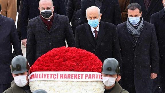 Bahçeli ve beraberindekiler, parti genel merkezindeki MYK ve MDK toplantısı öncesi yaptıkları Anıtkabir ziyaretinde Aslanlı Yol'dan yürüyerek Atatürk'ün mozolesine geldi. Bahçeli'nin mozoleye çelenk bırakmasının ardından saygı duruşunda bulunuldu. Daha sonra Misakımilli Kulesi'ne geçen Bahçeli, Anıtkabir Özel Defteri'ni imzaladı. Bahçeli, deftere şunları yazdı: