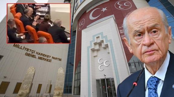 Dem Partili Bakırhan'ın Başkan Erdoğan çağrısının ardından MHP lideri Bahçeli alkışlayarak Bakırhan'a destekte bulundu.