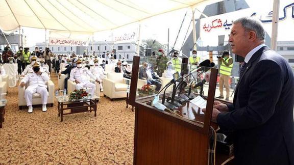 Tersane Komutanının projeye ilişkin bilgi verdiği törende konuşan Akar, Pakistan Silahlı Kuvvetleri için projenin bir aşamasının daha hayata geçirildiği günde dost ve kardeş Pakistan'da bulunmaktan duyduğu memnuniyeti ifade ederek sözlerine başladı.