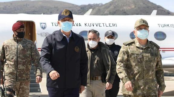 Milli Savunma Bakanı Hulusi Akar ve TSK'nın komuta kademesi "Rüzgar Alayı" olarak bilinen Gökçeada'daki komando birliğinde inceleme ve denetlemelerde bulundu