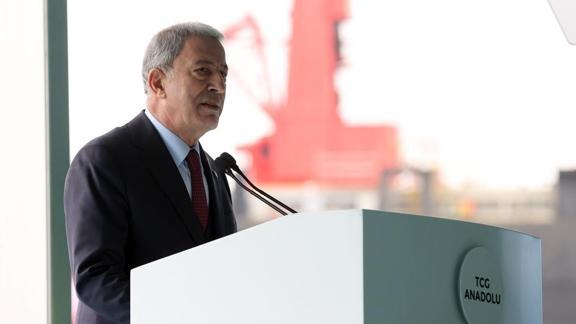 Akar, Başkan Erdoğan'ın da katıldığı TCG Anadolu gemisinin hizmete giriş töreninde, Türk Silahlı Kuvvetlerinin etkin, caydırıcı ve saygın niteliklerini artırmaya yönelik savunma sanayii projelerine azim ve kararlılıkla devam ettiklerini belirtti.