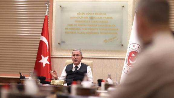 Bakan Akar, toplantıda, savunma ve güvenlik faaliyetlerine ilişkin bilgi alarak talimatlar verdi.