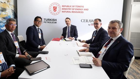 Enerji ve Tabii Kaynaklar Bakanı Alparslan Bayraktar, Petronas Üst Yöneticisi (CEO) Tengku Muhammad Taufik, Halliburton CEO'su Jeff Miller, Cheniere Energy Başkan Yardımcısı ve Operasyon Direktörü Anatol Feygin ve heyetleriyle bir araya geldiklerini bildirdi.