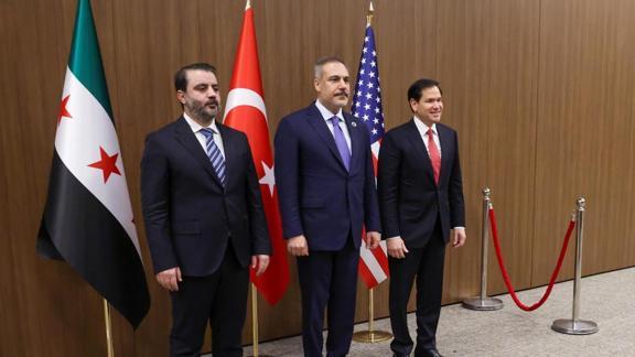 Görüşmeye, Dışişleri Bakanı Hakan Fidan, ABD Dışişleri Bakanı Marco Rubio ve Suriye Dışişleri Bakanı Esad Hasan Şeybani katıldı.