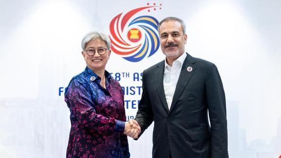 Paylaşımda, Fidan'ın Malezya'nın başkenti Kuala Lumpur'da düzenlenen ASEAN 58. Dışişleri Bakanları Toplantısı kapsamında Avustralya Dışişleri Bakanı Wong ile bir araya geldiği bildirildi.