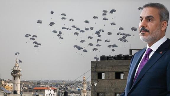 BAŞKAN ERDOĞAN ONAY VERDİBakan Fidan, havadan yardım konusunda "Bütün uluslararası profesyonel yardım örgütleri, havadan yardım atılmasının ölüme sebep olduğunu ve kesinlikle yerini bulmadığını söylüyor. Buna rağmen Cumhurbaşkanımıza durumu arz ettik. Cumhurbaşkanımız bu konuda bize, yapılması konusunda onay verdi." dedi.