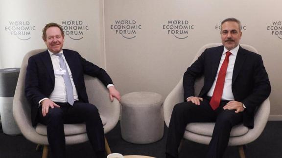 Dışişleri Bakanı Hakan Fidan, Hollanda geçici hükümetinin Dışişleri Bakanı David van Weel ile İsviçre'nin Davos kasabasında bir araya geldi.