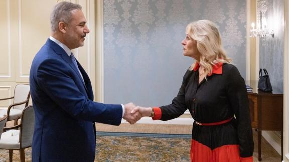 Dışişleri Bakanı Hakan Fidan, İrlanda'nın başkenti Dublin'de Türkiye-İrlanda Parlamentolararası Dostluk Grubunun Düzenleyicisi Senatör Alison Comyn ile bir araya geldi.
