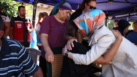 İlk olarak yangına müdahale ederken şehit düşen ağır taşıt şoförü Tolunay Kocaman'ın Seyitgazi ilçesi Kümbet Mahallesi'ndeki babaevini ziyaret eden Bakan Göktaş, şehidin annesi Hatice ve babası Hüseyin Kocaman ile eşi Burcu Kocaman ve yakınlarıyla görüştü.