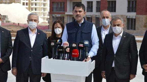 Sürsürü Mahallesi'ndeki şantiye alanında yapılan çalışmalara ilişkin açıklamada bulunan Bakan Kurum, 24 Ocak 2020'deki depremin ardından Elazığ ve Malatya'da 27 bin konutun dönüşümünü başlattıklarını söyledi. Bakan Kurum, "Deprem esnasında Elazığ'da çok önemli bir süreç yürüttük. 84 bin binada hasar tespit çalışması yaptık. Elazığ ve Malatya'da 27 bin konutun dönüşümünü başlattık. Depremin üzerinden bir yıl geçmeden 8 bin konutu vatandaşımıza teslim ettik. Şu an Elazığ'da biten konut sayısı 11 bin bağımsız bölümü aşmıştır. Yine Malatya'da sürdürdüğümüz 4 bine yakın bağımsız bölümün de yarısı tamamlandı, kalan yarısında da çalışmalar hızlı bir şekilde devam ediyor. 3 bin 500 tarım köy konutu yapıyoruz. Tarım köy konutları, kırsal kalkınmayı sağlayacak köylerimizin, beldelerimizin kalkınmasına fayda sağlayacak. Elazığ'da kalan konutları yıl sonu teslim edeceğiz. Şehrin kuzeyinde, güneyinde, batısı ve doğusunda da yerleşim alanları inşa ediyoruz. Şehri dört tarafta da büyütecek ve bu noktada 50 yılını planlayacak şekliyle inşa etmeye gayret gösteriyoruz. O yüzden bizim sosyal konut talebine ilişkin yapımımız devam edecek. Ancak önceliğimiz dediğim gibi vatandaşlarımızı bir an önce evlerine yerleştirmektir: Akabinde yine bu projeleri yapmaya devam edeceğiz" dedi.
