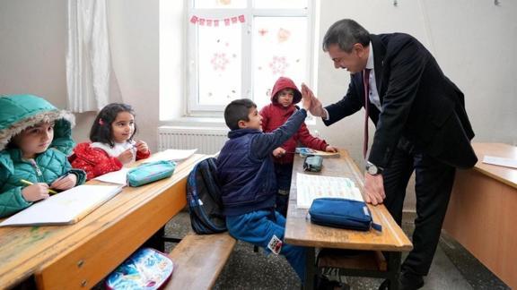 Bakan Tekin, daha sonra İnceler Ortaokulu'ndaki öğrenci ve öğretmenlere sürpriz ziyarette bulundu.