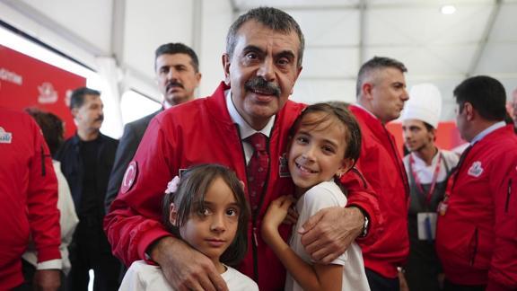 Bakan Tekin, buradaki öğrencilerle fotoğraf çekilip, sohbet etti.