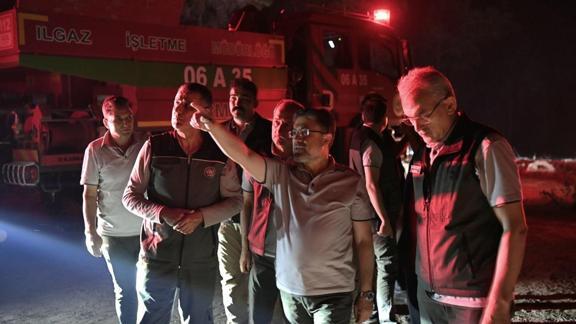 Yangın bölgesinde incelemelerde bulunan Yumaklı, gece saatlerinde yangının sıfır noktasında mücadele eden ekipleri ziyaret etti.