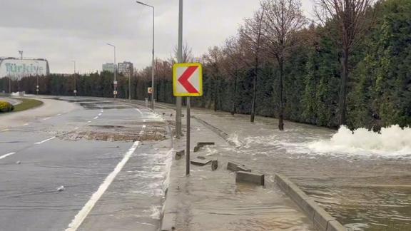Yeşilköy Mahallesi Yeni Havaalanı Caddesi'nde ana isale hattındaki borunun henüz belirlenemeyen nedenle patlaması sonucu caddede su birikintisi oluştu.