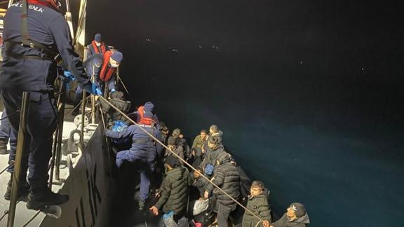 Diğer bir operasyonda ise lastik bot içinde bir grup düzensiz göçmen olduğu bilgisini alan ekipler, "TCSG-61" Sahil Güvenlik Gemisi ile lastik botu durdurarak içindeki 30 düzensiz göçmen ile 12 çocuğu yakaladı.