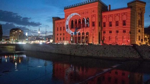 Başkent Saraybosna'daki tarihi Vjecnica Kütüphanesi ile Mostar Köprüsüne ise 15 Temmuz şehitleri anısına Türk bayrağı yansıtıldı.