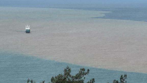 Çamurlu suyun aktığı kesim ile geniş alanda denizin rengi değişti.
