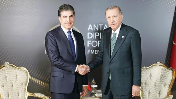Irak Kürt Bölgesel Yönetimi (IKBY) Başkanı Neçirvan Barzani, 4. Antalya Diplomasi Forumu'nda Başkan Recep Tayyip Erdoğan ile gerçekleştirdiği görüşmeye ilişkin sosyal medya hesabı üzerinden açıklama yaptı. Görüşmenin "son derece verimli" geçtiğini belirten Barzani, "Türkiye'de barış sürecinin istikrar ve kalıcı barışa giden bir yol olarak yeniden canlandırılmasının önemini yineledim. Bu tarihi fırsatın değerlendirilmesi gerektiğini ve PKK'nın Öcalan'ın çağrısına olumlu yanıt vermesi gerektiğini vurguladım" dedi.
