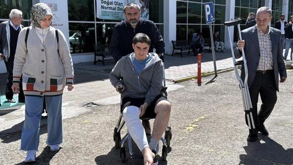 Köpeklerden kaçarken istinat duvarından düşerek bacağı kırılan Aydın, Kırıkkale Yüksek İhtisas Hastanesindeki tedavisinin ardından taburcu edildi.