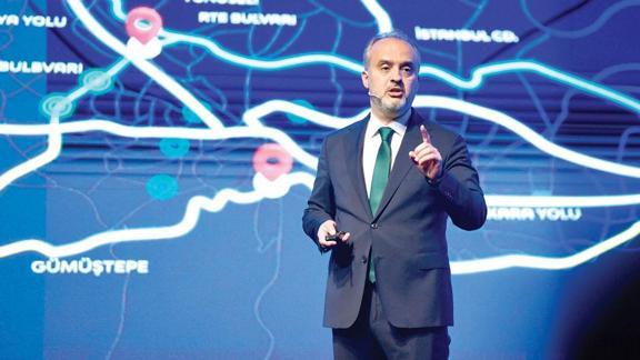 Atatürk Kongre ve Kültür Merkezi'nde yapılan proje lansmanında, Türkiye Yüzyılı'nda Bursa'yı daha ileri taşıyacak projelerini anlatan Bursa Büyükşehir Belediye Başkanı Alinur Aktaş, ilk olarak 'Ulaşan Şehir' başlığıyla ulaşıma değindi. Bursa'da 57 km'lik raylı sistem olduğunu belirten Başkan Aktaş, "Bursaray kapasitesini yüzde 60 artırdık. 9 km'lik Kent Meydanı-Terminal tramvay hattımızı işletmeye aldık. İstanbul Caddesi'ni raylı sistemle buluşturduk. 4,6 km'lik Emek-Şehir Hastanesi uzatma hattının ilk istasyonunu açıyoruz. Bu hatla raylı sistem ağımızı YHT Bursa Garı ve Şehir Hastanesi'yle buluşturuyoruz. Diğer hattımız da Üniversite-Görükle-Kurtuluş Hattı olacak. 5,4 km ve 3 istasyonda oluşan bu hat ile üniversiteden Görükle'ye raylı sistemle erişimi sağlıyoruz. Kurtuluş'taki yerleşimi metroyla buluşturuyoruz. Önümüzdeki dönem raylı sistem hattını 89 km'ye ulaştırarak, toplu taşımada dönüşümü gerçekleştireceğiz" diye konuştu.