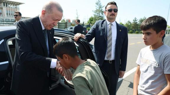 15 Temmuz Şehitler Anıtı'nda, Adıyaman'dan gelen çocukları gören Erdoğan, aracından inerek onlarla bir süre sohbet etti.