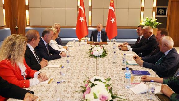 "Erdoğan Dijital Medya" hesabından yapılan paylaşımda, Cumhurbaşkanı Erdoğan'ın kurul üyelerini kabulünden fotoğrafa yer verildi.