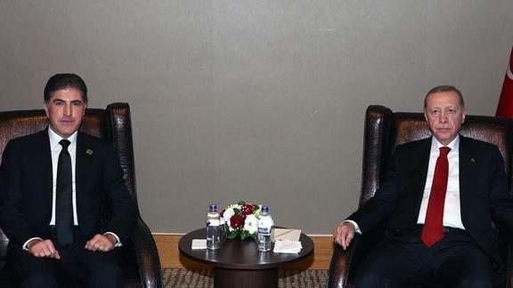 Başkan Erdoğan, Antalya Diplomasi Forumu için Türkiye'de bulunan Irak Kürt Bölgesel Yönetimi Başkanı Neçirvan Barzani'yi kabul etti.
