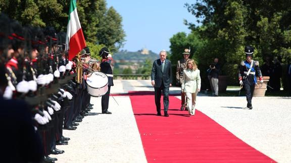 Başkan Recep Tayyip Erdoğan, İtalya Başbakanı Giorgia Meloni davetine icabetle başkent Roma'ya geldi.