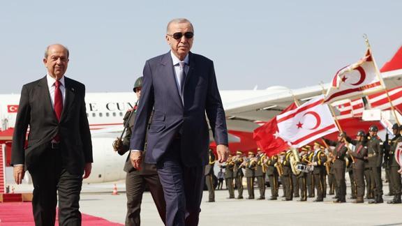 Erdoğan, Kıbrıs Barış Harekatı'nın 51. yılında, 20 Temmuz Barış ve Özgürlük Bayramı törenlerine katılmak üzere KKTC'ye geldi.