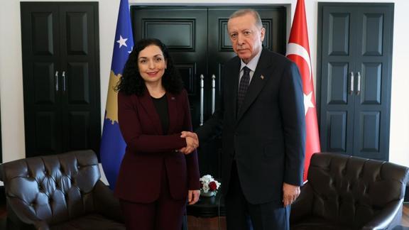 Başkan Erdoğan, Kosova Cumhurbaşkanı Osmani ile bir araya geldi.Başkan Recep Tayyip Erdoğan (sağda), 3. Antalya Diplomasi Forumu (ADF) kapsamında Kosova Cumhurbaşkanı Vjosa Osmani (solda) ile bir araya geldi.