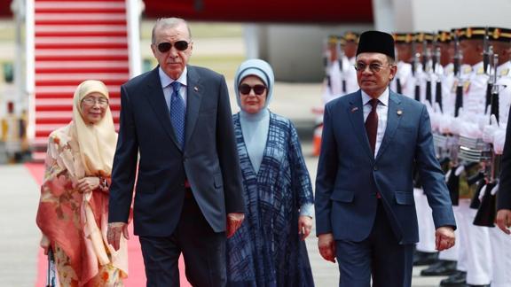 Cumhurbaşkanı Erdoğan ile eşi Emine Erdoğan, Dışişleri Bakanı Hakan Fidan, Enerji ve Tabii Kaynaklar Bakanı Alparslan Bayraktar, Milli Savunma Bakanı Yaşar Güler, Sanayi ve Teknoloji Bakanı Mehmet Fatih Kacır, Tarım ve Orman Bakanı İbrahim Yumaklı, Ticaret Bakanı Ömer Bolat, Türk Devletleri Teşkilatı (TDT) Aksakallar Konseyi Başkanı Binali Yıldırım ile Cumhurbaşkanı Dış Politika ve Güvenlik Başdanışmanı Akif Çağatay Kılıç da Malezya'ya geldi.