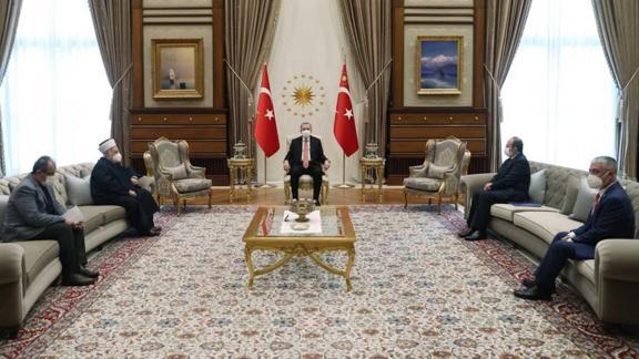 Başkan Recep Tayyip Erdoğan, Mescid-i Aksa İmam Hatibi Şeyh İkrime Sabri'yi kabul etti.Cumhurbaşkanlığı Külliyesi'nde basına kapalı gerçekleştirilen kabulde, eski Diyanet İşleri Başkanı Mehmet Görmez de hazır bulundu.