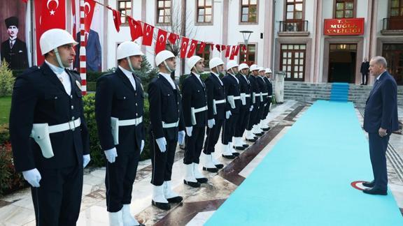 Başkan Recep Tayyip Erdoğan, Muğla Valisi İdris Akbıyık'ı ziyaret etti. Cumhurbaşkanı Erdoğan, Valilik girişinde kendisini karşılayan tören mangasını selamladı.