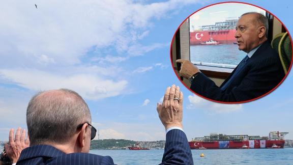 Sonrasında tekneyle denize açılarak platformu yakından inceleyen Erdoğan, geminin kaptanıyla telsiz aracılığıyla sohbet etti.