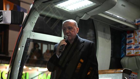Merkez Camisi önünde kendisini bekleyen vatandaşları selamlayan Erdoğan, makam aracından inip otobüse geçerek kısa bir konuşma yaptı.
