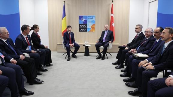 Erdoğan, NATO Devlet ve Hükümet Başkanları Zirvesi'ne katılmak üzere geldiği Hollanda'nın Lahey kentinde ikili temaslarına devam ediyor.