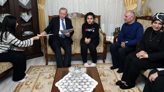 Aile üyeleriyle sohbet eden Cumhurbaşkanı Erdoğan, çocukların karnelerini inceledi.