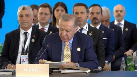 Başkan Erdoğan, Azerbaycan'ın Gebele kentinde gerçekleştirilen Türk Devletleri Teşkilatı 12. Zirvesi'nde, katılımcıları selamlarken, zirve vesilesiyle köklü Türk tarihinin izlerini taşıyan Gebele'de bulunmaktan duyduğu memnuniyeti dile getirdi.