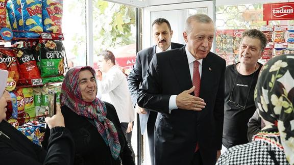 Konvoyu sık sık durdurarak her fırsatta vatandaşa kulak veren Erdoğan'a vatandaşlar da sevgi gösterisinde bulundu.
