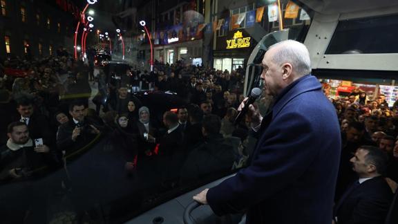 Merkez Camisi önünde kendisini bekleyen hemşehrilerini eşi Emine Erdoğan ile selamlayan Başkan Erdoğan, makam aracından inerek, otobüse geçti.