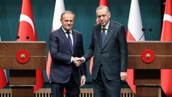 Polonya ile 6 asrı aşan köklü tarihlerinden aldıkları güçle bölgeyi ilgilendiren her konuyu açık yüreklilikle iki müttefik ve stratejik ortak olarak ele aldıklarını belirten Erdoğan, Tusk ve heyetiyle yaptıkları görüşmelerde Türkiye-Polonya ilişkilerini güçlendirme ve çeşitlendirme iradelerini teyit ettiklerini söyledi.