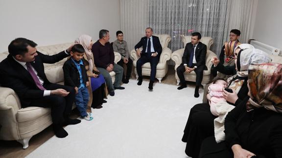 Siteler Mahallesi Örenli TOKİ'de yaşayan Abdullah Karakuş ve Mukaddes Karakuş çiftini ziyaretinde Erdoğan, aile üyeleriyle sohbet etti.