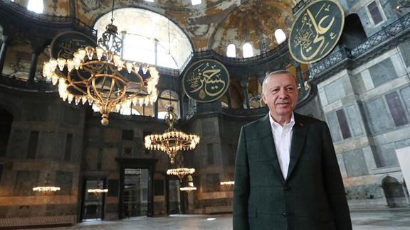 Başkan Erdoğan, sosyal medya hesabından 10 Temmuz 2020 tarihli Cumhurbaşkanlığı kararını paylaşarak, "5 yıl önce bugün zincirlerini kırıp Ezan-ı Muhammedîlerle yeniden buluşturduğumuz Ayasofya, inşallah ebediyen özgür kalacak" dedi.