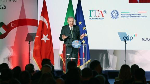 Erdoğan, bir otelde, Ticaret Bakanlığı, Dış Ekonomik İlişkiler Kurulu (DEİK), İtalya Dışişleri Bakanlığı ve İtalyan Ticaret Ajansı tarafından düzenlenen Türkiye-İtalya İş Forumu'nda yaptığı konuşmada, İtalya Başbakanı Giorgia Meloni'ye nazik misafirperverliği için teşekkür etti.