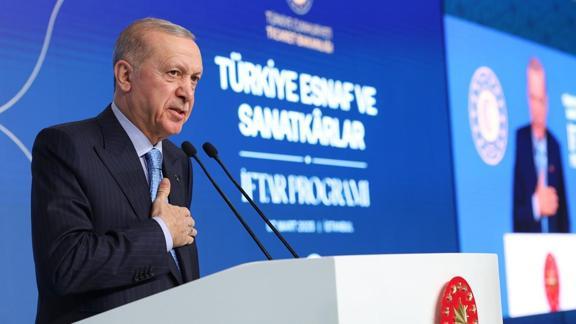Erdoğan, Yenikapı'daki Dr. Mimar Kadir Topbaş Gösteri ve Sanat Merkezi'nde düzenlenen Türkiye Esnaf ve Sanatkarlar İftar Programı'nda yaptığı konuşmada, esnaf ve sanatkarlarla ramazanın manevi ikliminde bir araya gelmenin ve hasret gidermenin bahtiyarlığını yaşadığını söyledi.